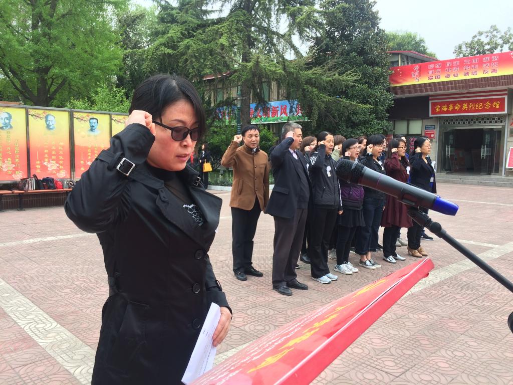 上午10时,参加活动的教师党员举行了纪念先烈仪式,在庄严的国歌声中向宝天铁路英烈纪念碑敬献了花篮并列队向革命烈士默哀致敬。接着,第一党支部书记王红梅带领大家重温了入党誓词,随后,全体党员依次瞻仰了宝天铁路英烈纪念碑,整个活动在庄严肃穆的气氛中进行。