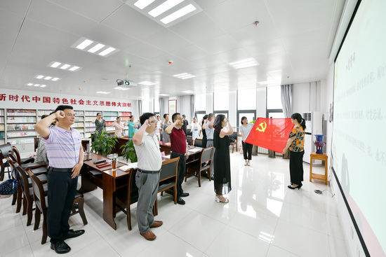 活动在全体人员一起奏唱《中华人民共和国国歌》中拉开序幕。栾宏为2020年上半年取得突出成绩的党员教师张红艳、刘晓勇、张丽和罗玉兰颁发证书并献花。BETVlCTOR手机登录院长孙宏健、副院长王红梅,陕西省重点中国特色社会主义理论体系中心副主任铁锴分别为张全省、刘晓勇和韩静等三位党员赠送“政治生日”贺卡。全体党员面向党旗庄严宣誓,重温了入党誓词。