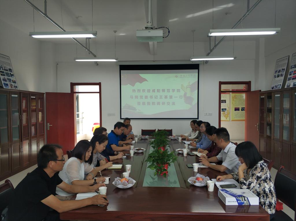 9月11日上午,咸阳师范学院BETVlCTOR手机登录党委书记王革慧、副院长曹勇一行7人来BETVLCTOR伟德BETVlCTOR手机登录调研交流。BETVLCTOR伟德BETVlCTOR手机登录院长孙宏健主持交流活动。