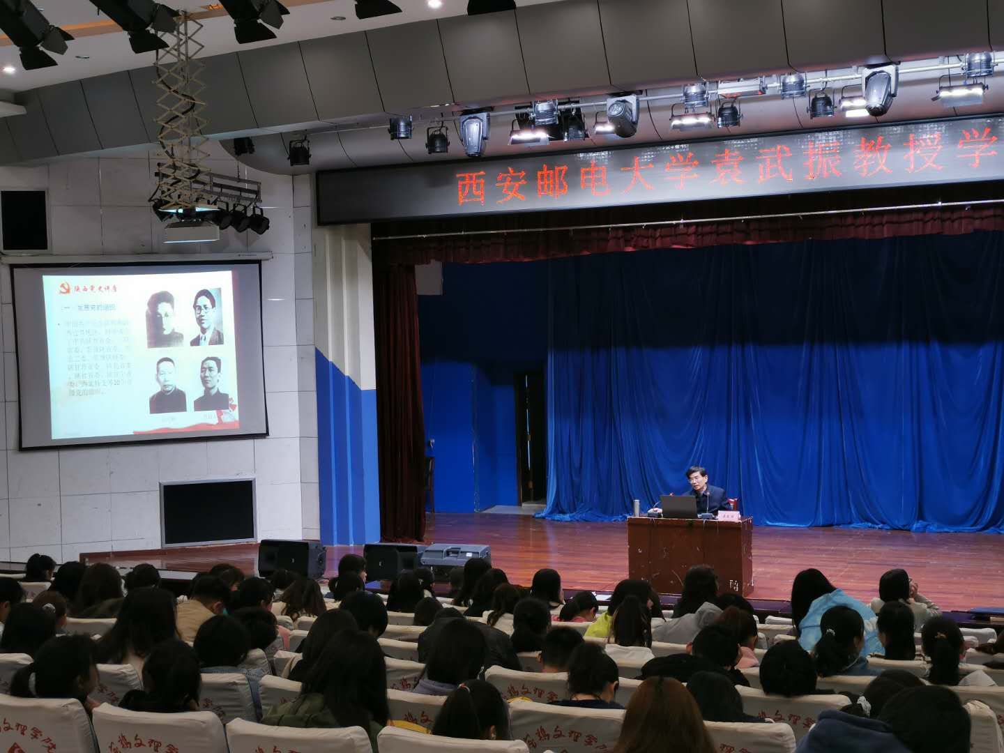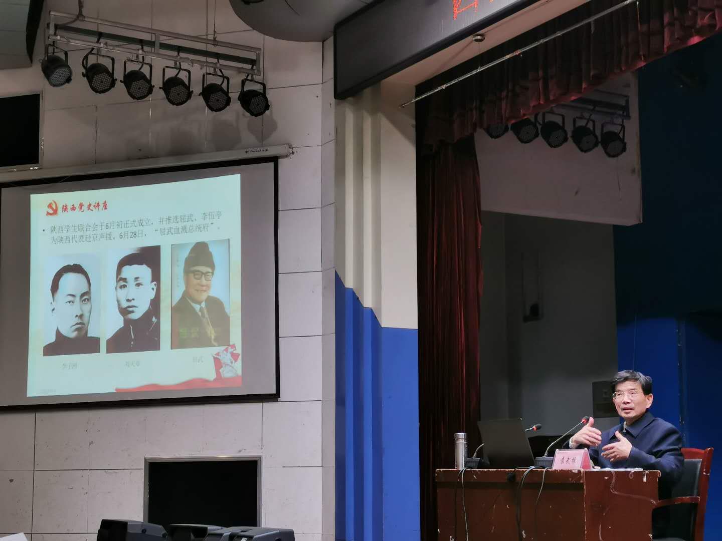 报告会上,袁武振教授首先介绍了陕西党组织领导陕西人民在大革命时期、土地革命时期、抗日战争时期和解放战争时期等不同时期的革命史实,重点分析了党领导陕西新民主主义革命胜利的基本经验。袁教授在讲解中以大量党史资料为依据,结合三秦大地英雄人物事迹,阐释了中国共产党人的初心和使命,并教导师生既要发扬革命先烈们顽强拼搏、不畏牺牲的精神,更要学会总结历史经验教训,汲取开拓前进的智慧和力量,做新时代的先锋。