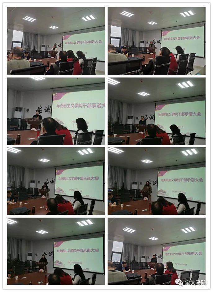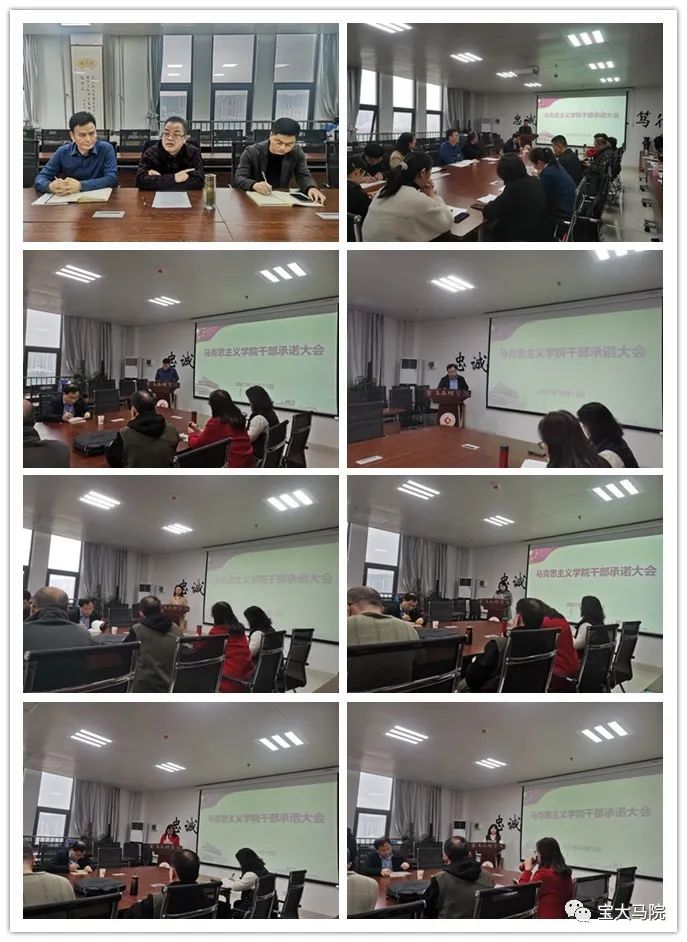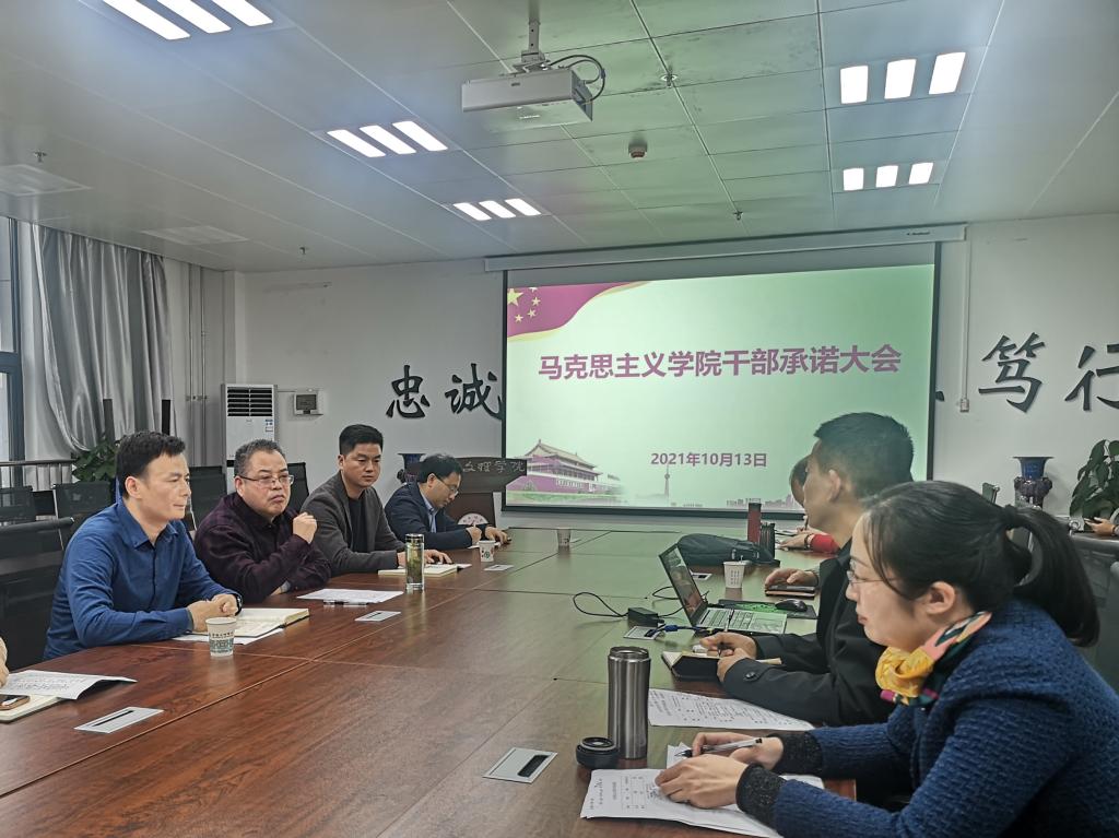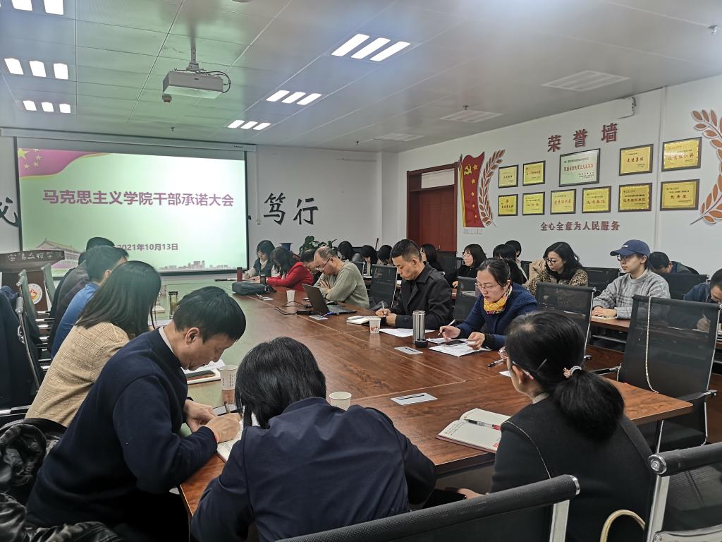 干部承诺工作旨在提高全院干部队伍责任意识和担当意识,形成主动作为和简单清新的工作氛围,为BETVLCTOR伟德高质量发展提供有力保障。承诺对象为:BETVlCTOR手机登录领导班子成员,办公室负责人、陕西省重点中国特色社会主义理论体系研究中心(宝鸡基地)副主任、三种文化协同育人思想政治教育研究基地副主任、宝鸡市干部培训中心高校基地主任、各教研室负责人、工会负责人、教工第一第二党支部书记。承诺内容围绕3大方面、7项具体内容进行:一是工作思路方面,主要围绕本学期岗位职责范围内的工作重点、工作方法、工作目标3项具体内容进行承诺;二是模范引领方面,主要围绕个人在教学引领和科研示范2项具体内容进行承诺;三是工作作风方面,主要围绕个人在廉洁从教、达己成人2项具体进行承诺。所有承诺内容均以具体指标量化,并在学期末干部述职大会上进行承诺兑现,接受全体教师监督检查。