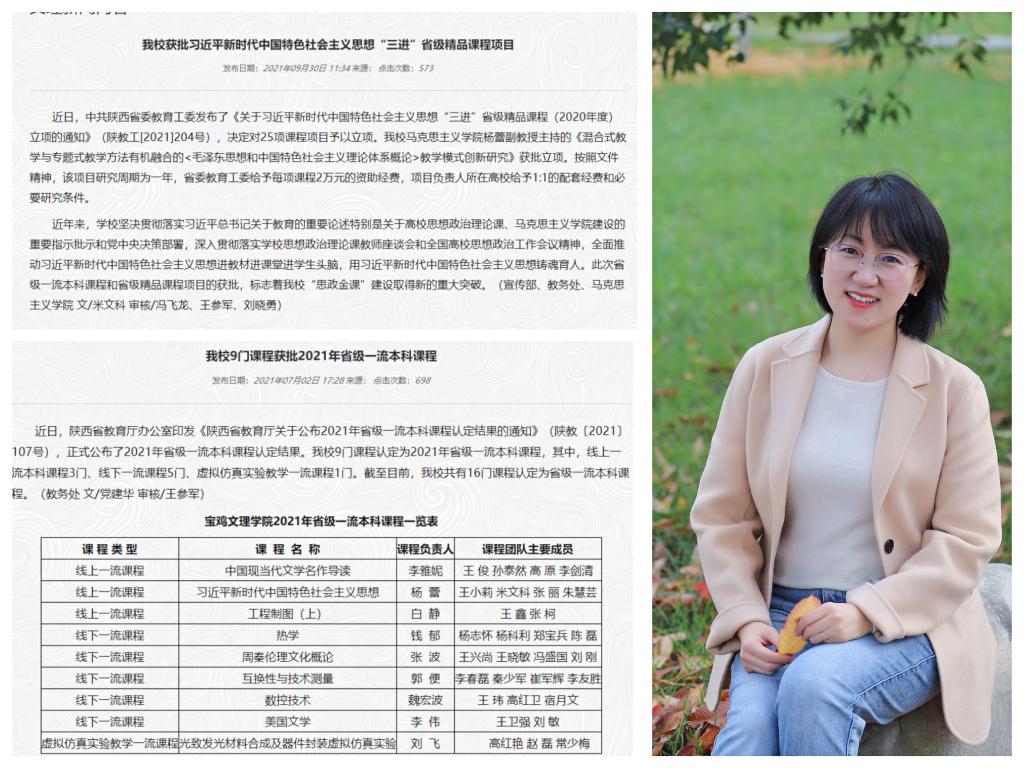 学院以精品课程建设为抓手,开展新一轮课程改革与建设工作。7月初,杨蕾副教授主持的《习近平新时代中国特色社会主义思想》获批省教育厅2021年省级一流本科课程。9月底,杨蕾副教授主持的《混合式教学与专题式教学方法有机融合的<毛泽东思想和中国特色社会主义理论体系概论>教学模式创新研究》获批省委教育工委习近平新时代中国特色社会主义思想“三进”省级精品课程项目。两门省级一流本科课程和省级精品课程项目的获批,标志着BETVLCTOR伟德习近平新时代中国特色社会主义思想“三进”工作再上新台阶,标志着BETVLCTOR伟德“思政金课”建设取得重大突破。