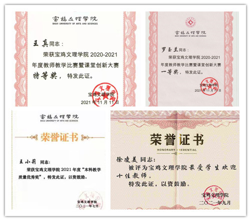 11月6日,王真、罗玉兰分别荣获BETVLCTOR伟德2020-2021年度教师教学比赛暨课堂创新大赛特等奖、一等奖。11月底,王红梅、王真经过选拔,获得参与陕西省高校课堂教学创新大赛资格。BETVLCTOR伟德获得课堂创新大赛“优秀组织奖”。12月初,傅文、罗玉兰、王真通过2021年陕西高校思政课教师“大练兵”网上评审,获得决赛资格,思政课教师“大练兵”初赛成绩历年最好。徐凌美荣获2021年度“最受学生欢迎十佳教师”,罗玉兰、王小莉荣获2021年度“本科教学质量优秀奖”。聂晓静和韩静、朱慧芸、王丽娜分别获批第十六批校级教学改革重点和一般项目。一年来,学院以“一室一品”教学改革为主战场,以“精彩一课”教研活动为突破口,以“优秀教师传帮带”为着力点,以“混合式”“专题式”教学改革为依托,激发了全体专兼职思政课教师的内生动力,新进教师漆文娟、赵云嘉、陆贝贝教学能力明显进步,全体教师教学综合能力明显提高。