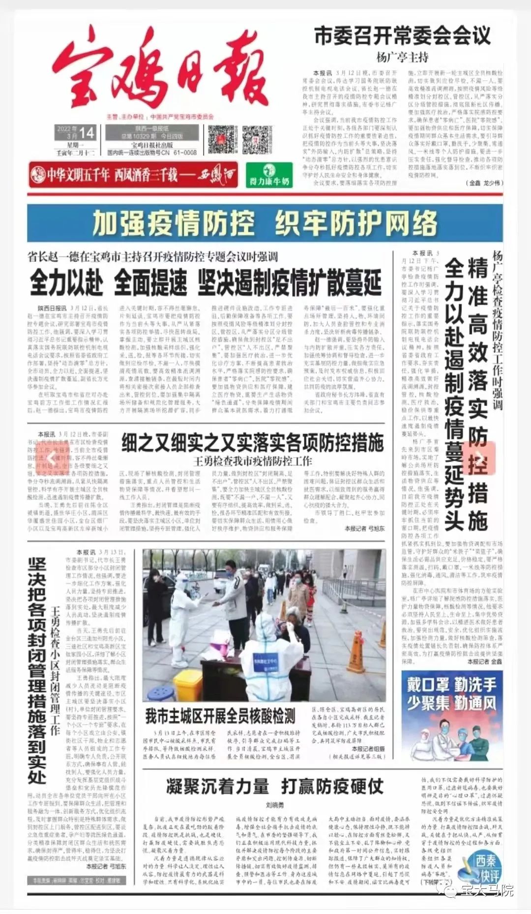 3月14日,《宝鸡日报》头版刊发BETVLCTOR伟德BETVlCTOR手机登录院长、陕西省重点中国特色社会主义理论体系研究中心(宝鸡基地)主任刘晓勇评论文章《凝聚沉着力量 打赢防疫硬仗》。