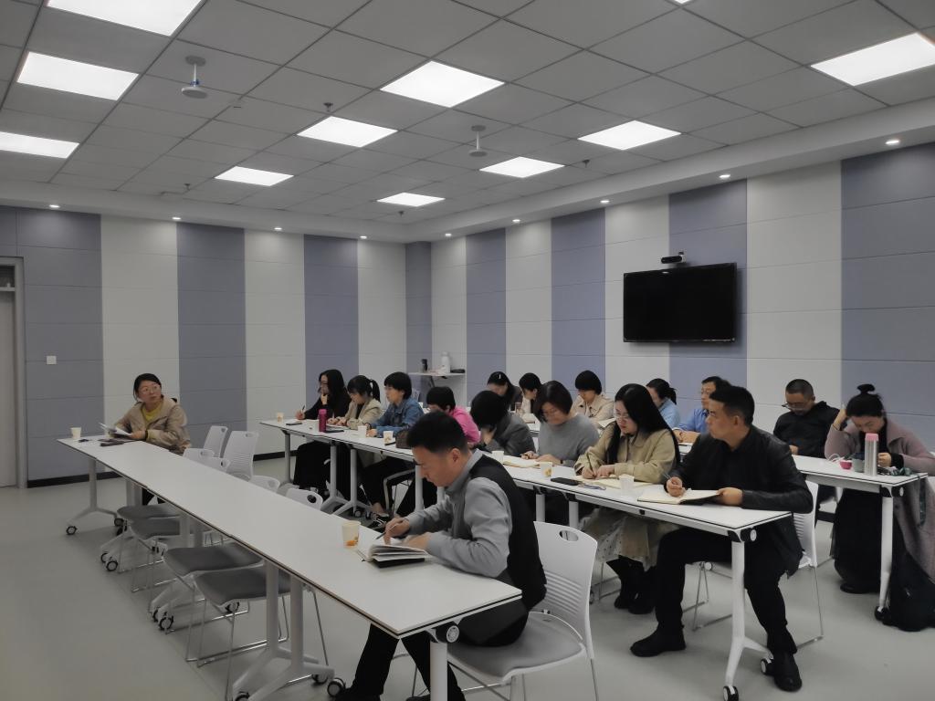 张丽首先强调了科研处关于2024年国家社科基金和教育部项目申报工作方案重要时间节点和具体任务安排,同时传达了2023年度国家社科基金高校思想政治理论课研究专项项目申报的相关通知,着重比对了今年活页、申报书和公告与往年的变化之处,对选题指南进行了详细解读。