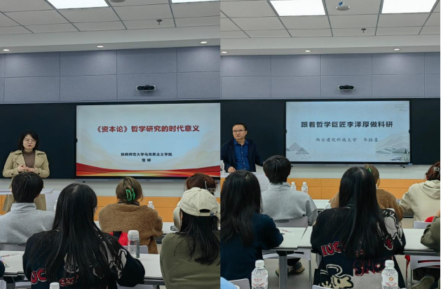 雪婷博士以《<资本论>哲学研究的时代意义》为题,在分享自身求学经历的基础上分别对《资本论》哲学研究的缘起、《资本论》哲学研究基本问题、《资本论》哲学研究推进过程等三个方面进行了深入阐释。韦拴喜博士以《跟着哲学巨匠李泽厚学做科研》为题,详细介绍了李泽厚科研经历、哲学研究的建构和特征,着重对李泽厚教授的治学和科研方法进行了讲解,希望对研究生们的学习科研有所帮助和启发。互动环节学生们踊跃举手请教相关学术问题,两位老师倾囊相授、耐心地为学生们答疑解惑,全体研究生受益匪浅。韦拴喜副教授还向BETVlCTOR手机登录赠送了学术专著,整场报告会秩序井然、气氛热烈。