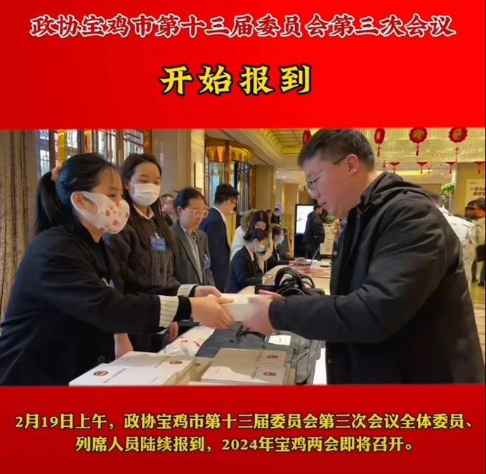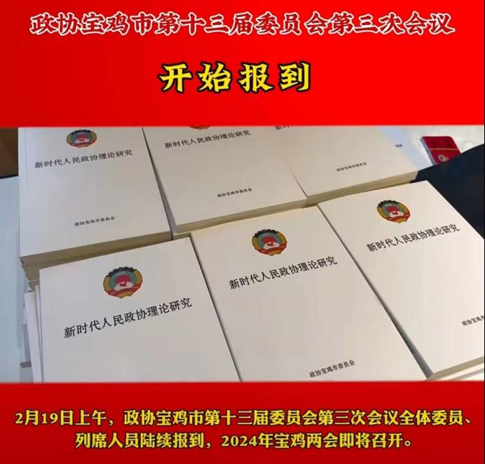 2月19日上午,政协宝鸡市第十三届委员会第三次会议开始报到,来自全市各党派团体、各族各界的市政协委员在登记领取出席证等会议资料的同时,还领到一本装帧精美的手册《新时代人民政协理论研究》。