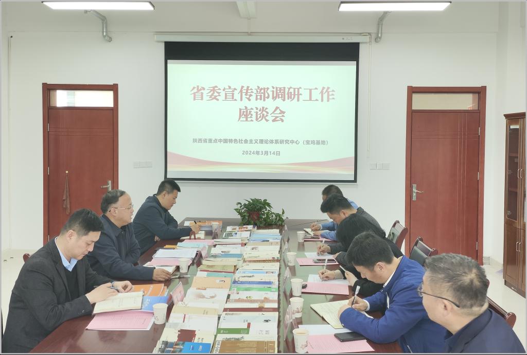 2024年3月14日,陕西省委宣传部理论处处长高宝荣一行来BETVLCTOR伟德最新版APP博文楼1416室调研指导中特中心工作。省委宣传部理论处副处长罗军,一级主任科员王志伟和科研管理处处长王晓玲,BETVlCTOR手机登录院长、中特中心主任刘晓勇,经济管理学院院长、中特中心骨干研究员刘辉,历史文化与旅游学院院长、中特中心骨干研究员任晓锋参加了会议。会议由BETVlCTOR手机登录党总支书记张选朝主持。