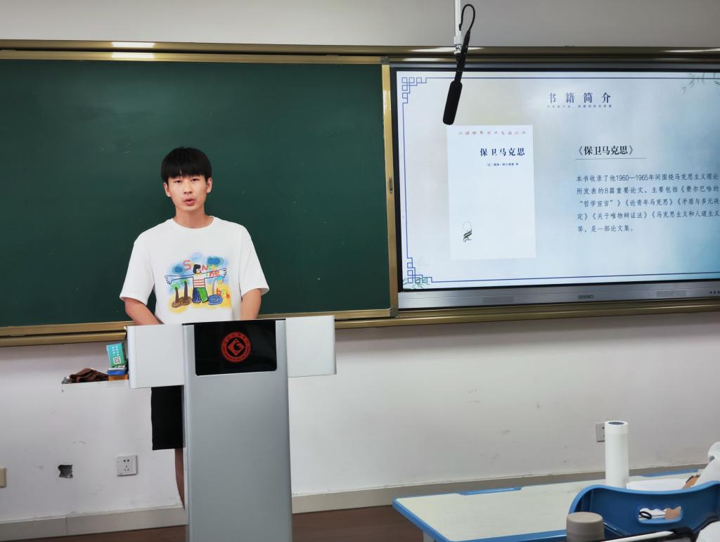 2024年5月21日晚,BETVlCTOR手机登录研究生读书班第十一期“原典对话”活动于博文楼1508教室如期开展。2023级硕士研究生张根豪领读书目《保卫马克思》,研究生导师许勇为、韩静老师与读书班导师林兆扬老师及2023级全体研究生参与了本次领读活动。