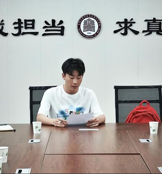 第二环节,由研究生代表张根豪发言。他谈到一年来的读书班学习充满了好学的热情与知识的火花,代表研究生们向学院全体教师表达了真挚的感谢,并表示在日后的学习生涯中将继续保持对读书的热爱,不辜负老师的关怀与期盼。