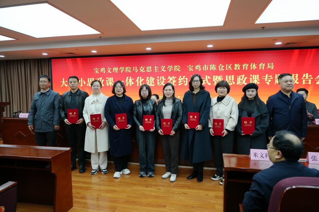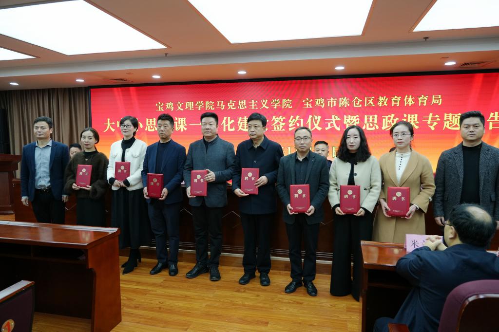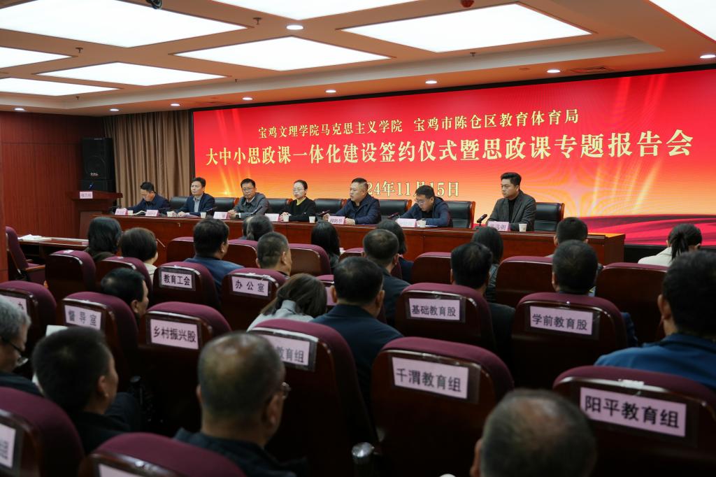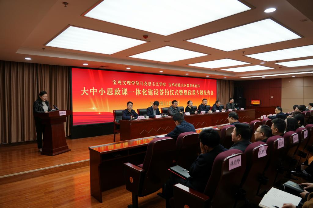 11月15日,BETVLCTOR伟德BETVlCTOR手机登录与陈仓区教育体育局在陈仓区教体局二楼会议室举行大中小思政课一体化建设签约仪式暨思政课专题报告会。校党委委员、副校长凡明锦,陈仓区委副书记、区委教育工作领导小组组长柳鹏举出席签约仪式并讲话。BETVLCTOR伟德BETVlCTOR手机登录党总支书记张选朝、院长刘晓勇,陈仓区区委常委、宣传部长徐宏刚,陈仓区教体局党组书记、局长李卫东参加签约仪式。陈仓区政府副区长齐晓辉主持签约仪式。