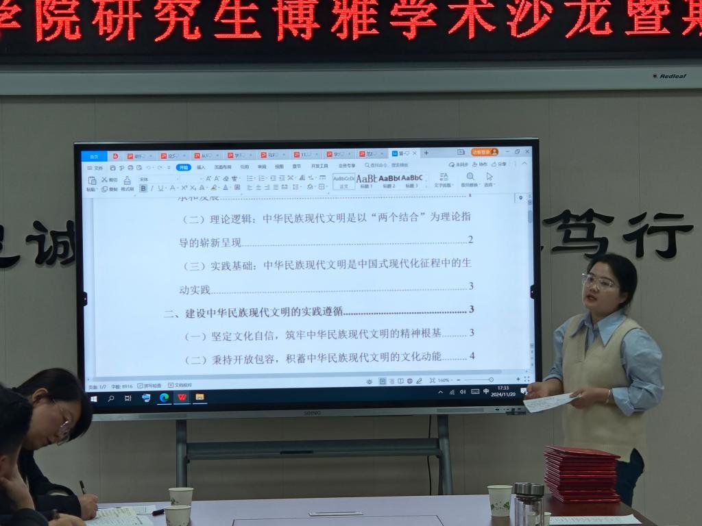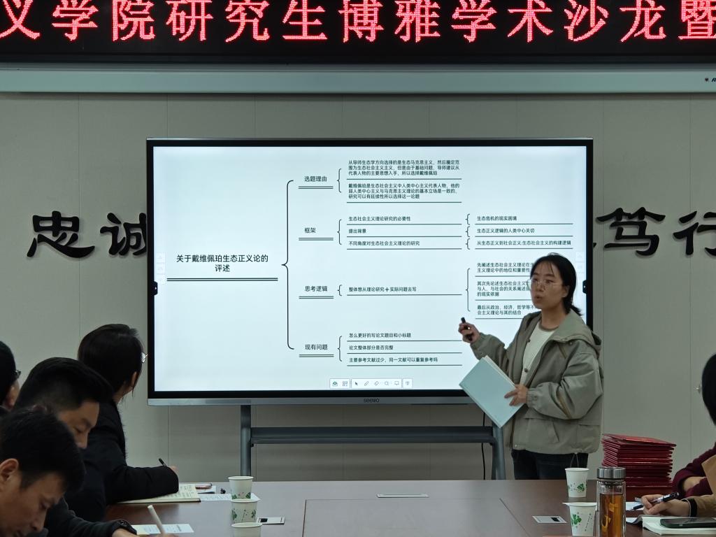 学术沙龙环节,硕士研究生李佳欣、王怡彤、陈任思遹、范思静、周艳、刘诗婷、杨淼、杨佳鑫、李长宇、张根豪、刘昊、胡晓玲依次上台就论文成果作学术汇报。硕士生导师代表韩静、米文科、王红梅在认真聆听同学们的汇报后,逐一进行了细致点评,高度肯定了同学们汇报的选题新颖性、准备充分度以及表述清晰化等方面优势,同时也指出了研究中存在的一些问题,如问题意识不够强烈、创新效果不够显著、学理性分析有待加强等。这些中肯的点评和建议为同学们今后的学术研究指明了方向,也激发了他们更加深入地思考和探索的热情。最后,导师代表向汇报同学颁发了荣誉证书。