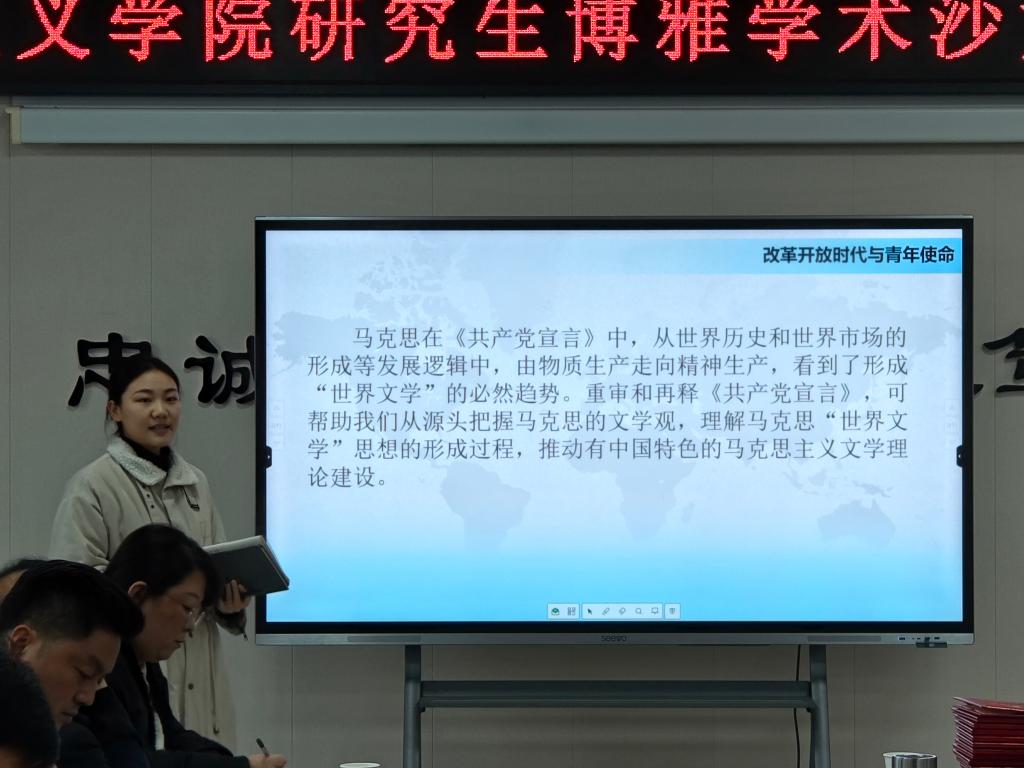 11月20日,BETVlCTOR手机登录在高新校区博文楼1201会议室召开研究生博雅学术沙龙暨期中座谈会,学院党总支书记张选朝、院长刘晓勇、副院长米文科、张丽和研究生教研室全体师生参加本次座谈会。会议由研究生教研室主任王真主持。