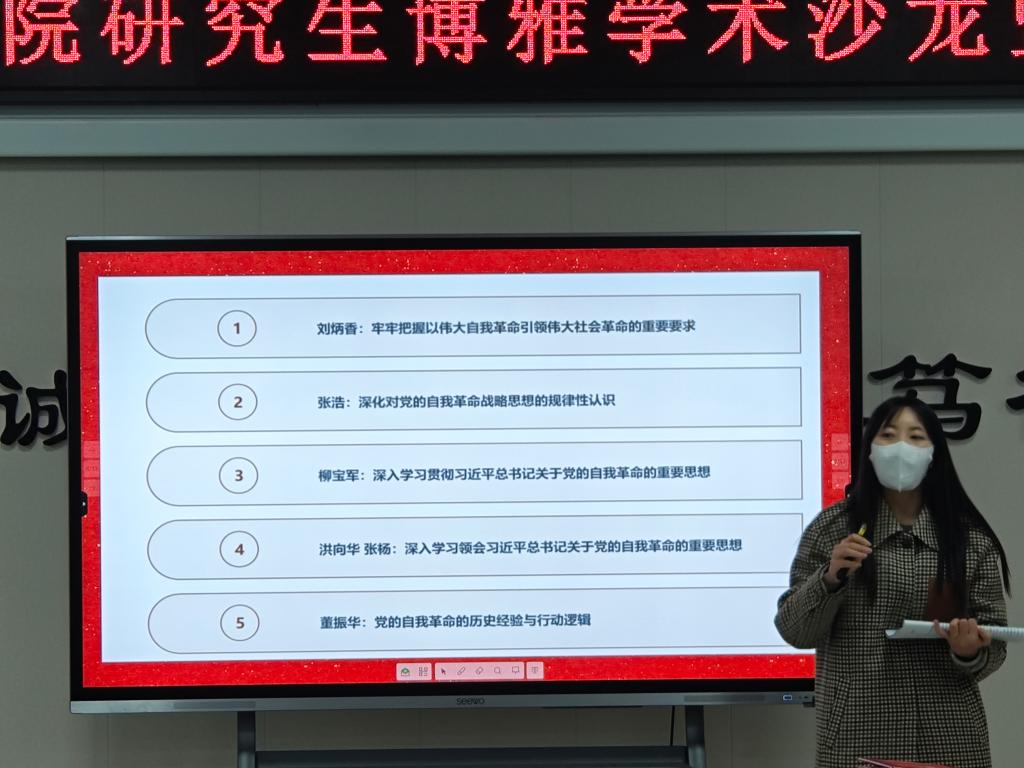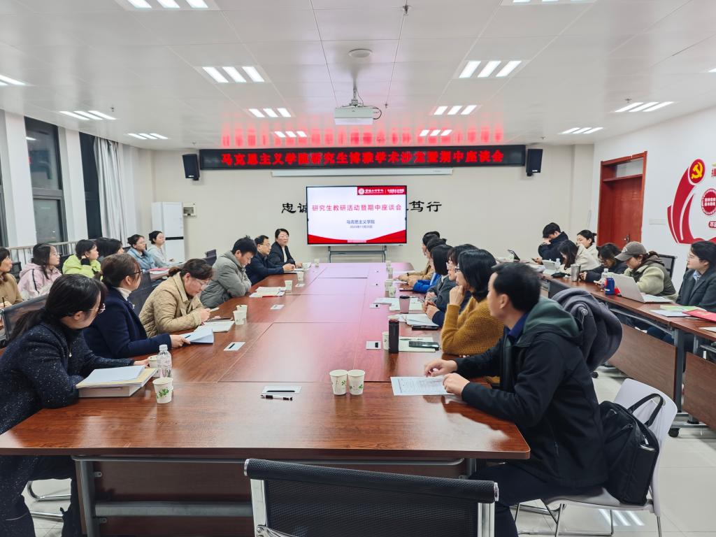 座谈会环节,张丽副院长首先介绍了学院研究生培养基本情况,结合马克思主义理论硕士研究生教育培养过程中日渐显现的读书班和教学实践特色指明了导师和研究生下一步工作重点,她还强调了期中教学检查在日常教学开展、培养计划制定、学生教育指导等方面目标任务,随后进行研究生导师、研究生授课教师及研究生交流座谈。