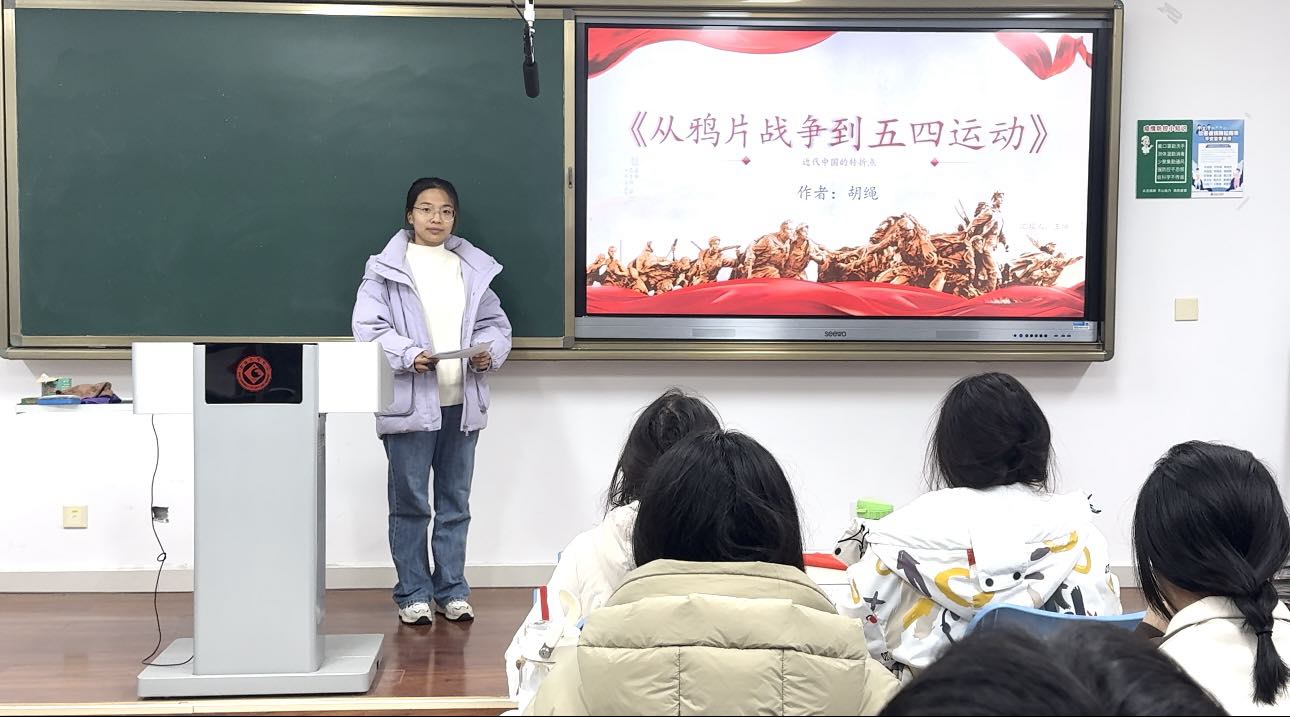 接下来,王琳从主要内容及其意义与价值方面对《从鸦片战争到五四运动》进行了分享。她总结了自己的感悟,认为阅读这本书带给她最大的收获就是“解惑”,了解了中国近代历史的发展历程,也知晓了很多文学作品的历史背景,增强了马克思主义信仰和对中国特色社会主义道路的信心。