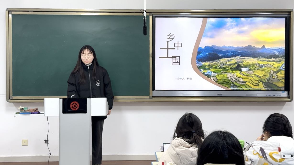 首先,秋艳从作者介绍、文章内容以及读书感悟三个方面进行了汇报。她认为本书深入探讨了中国乡土社会的内容及其基本特征;在中西对比中剖析了差序格局;还研究了家族、男女关系、礼治秩序、权力结构等多方面内容。这本书对理解中国传统社会结构、文化特性意义重大。其中对差序格局进行的解读有助于我们认识社会变迁及当下诸多社会现象。