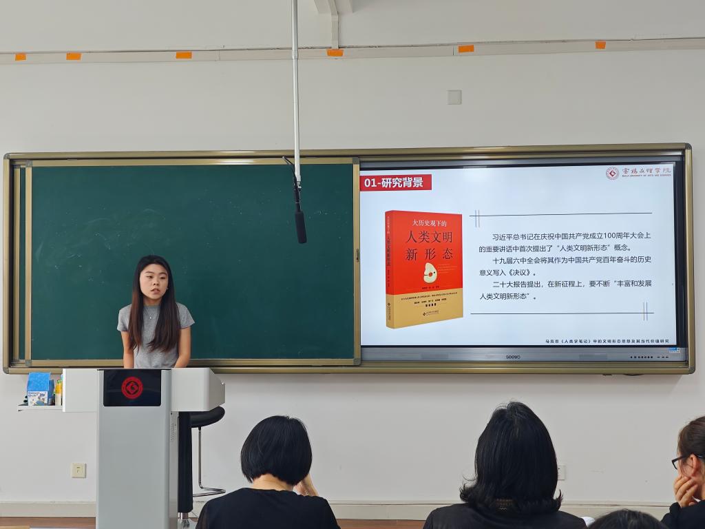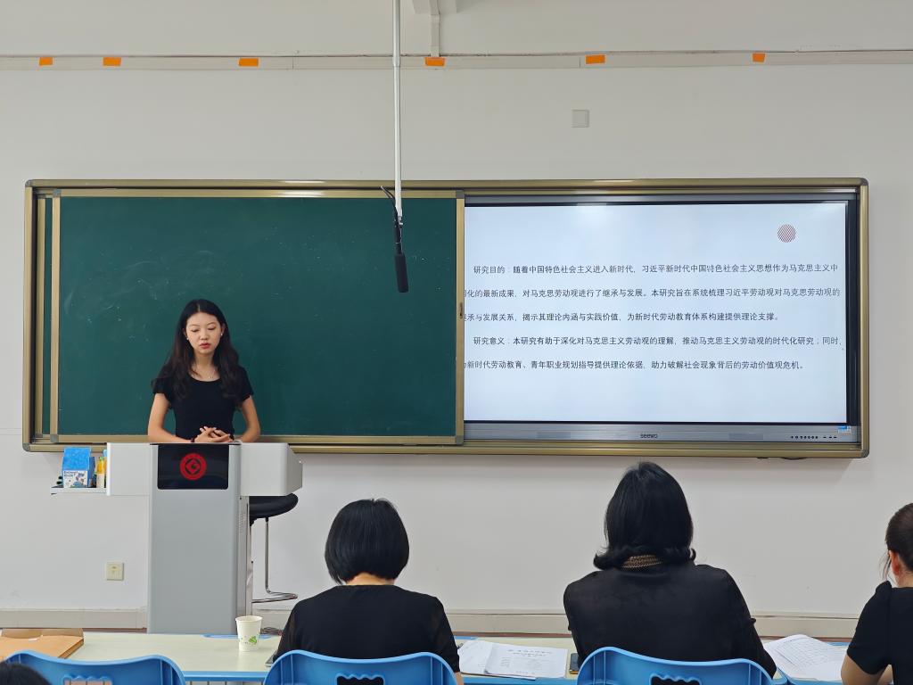 活动现场,10位申报2025年BETVLCTOR伟德最新版APP研究生创新科研项目的同学依次上台进行项目展示,围绕研究背景、研究意义、研究内容、创新特色等板块展开阐述。同学们聚焦新时代马克思主义理论的实践转化,围绕社会热点问题展开理论探讨。