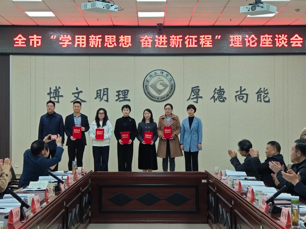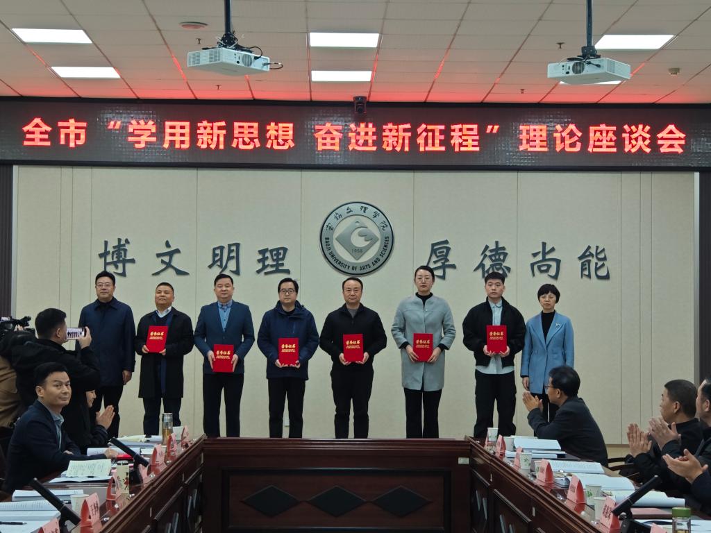 韩干校在致辞中对各位领导和嘉宾表示欢迎和感谢,简要介绍了学校的发展历程、办学特色及服务地方经济社会发展的主要成效等。他强调,做好党的创新理论阐释工作,既是高校履行思想政治教育职责的必然要求,也是服务地方发展的重要使命,为此要坚持和加强党的全面领导,主动对接国家和区域发展战略,持续深化内部改革,让党的创新理论在服务地方发展中落地生根、开花结果。希望通过本次理论座谈会深化对习近平新时代中国特色社会主义思想精髓、要义和实践要求的理解,更好运用党的创新理论指导实践,为宝鸡市经济社会发展和理论研究凝聚起强大的精神力量。