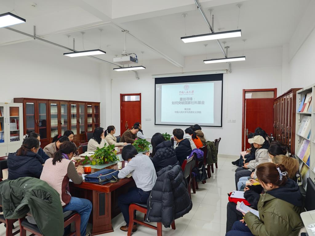 陶文昭教授以《重剑寻锋:如何突破国家社科基金》为题,通过起步有积快发、中坚领先半步、突破重剑寻锋三个阶段分享了二十余年的科研经历和经验,从选题角度、队伍构建、选题理由、核心内容、成果参考等方面分享了国家社科基金申报的要点。