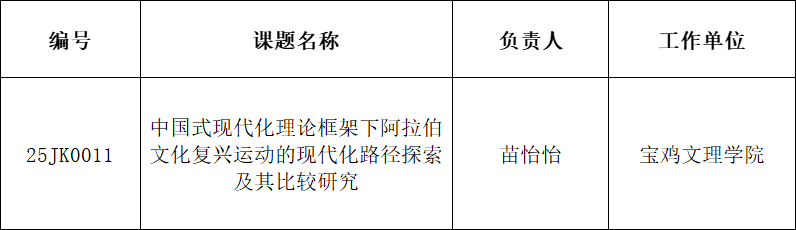 近日陕西省教育厅发布了《关于印发2025年度科研计划的通知》陕教函〔2025〕1131号),BETVlCTOR手机登录苗怡怡博士负责的《中国式现代化理论框架下阿拉伯文化复兴运动的现代化路径探索及其比较研究》获准人文社会科学专项立项项目经费1万元。