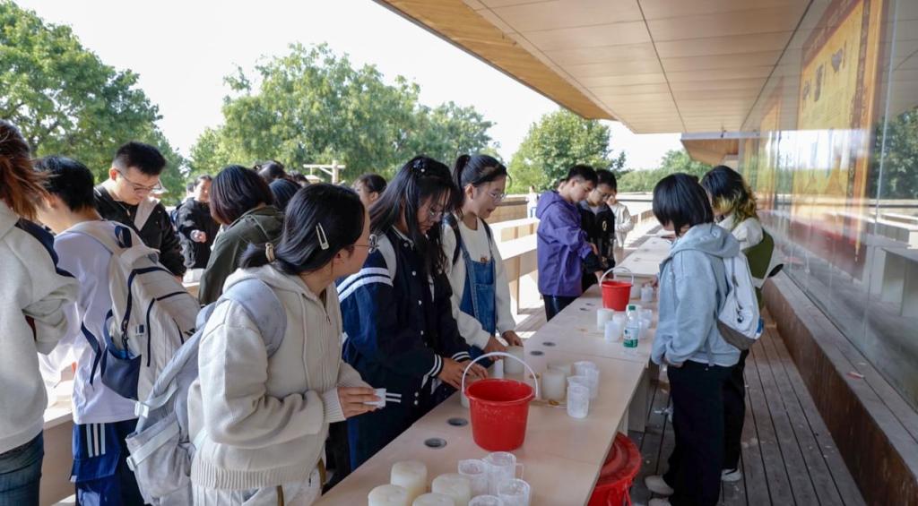 为了让同学们感悟中国古代劳动人民的智慧和创造力,在青铜器毛公鼎浇铸的现场教学中,通过亲手制作,进一步感受周文化的魅力。