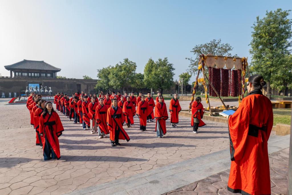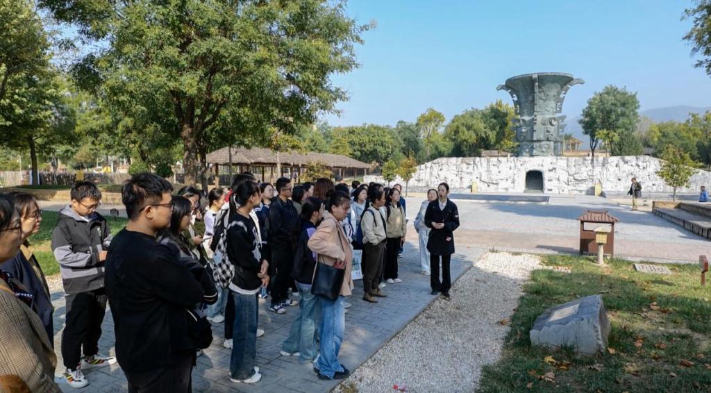 弘扬中华优秀传统文化,坚定文化自信,BETVLCTOR伟德社会实践教研室于10月13日组织文传院、美术学院、化工院、地环院、数信院、机械工程学院、历史文化与旅游学院、体育学院等学院部分本科生前往宝鸡市岐山县,开展以“寻觅周人印记 传承礼乐文明”为主题的思政课社会实践活动。师生们通过参观明堂、中轴文化景观带、周文化博物馆周公庙,以及现场举行《颂周公》、周礼制作青铜器教学活动,与中华优秀传统文化进行近距离接触感受中华礼乐文明的魅力